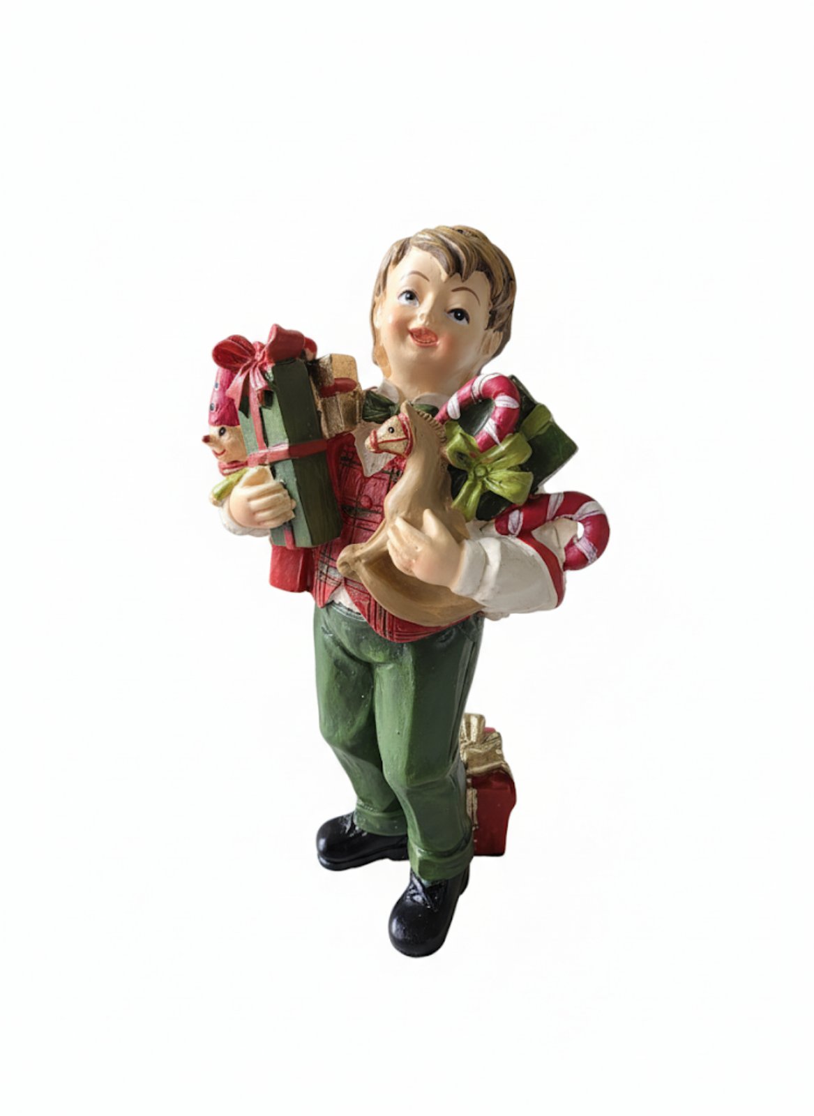 Погрузитесь в атмосферу праздника с этими восхитительными фигурками, изображающими счастливых детей с рождественскими подарками!