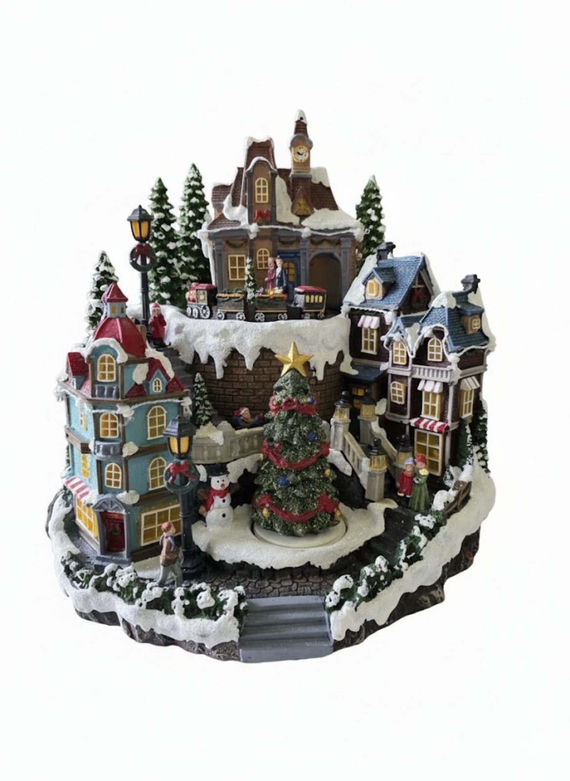 Этот домик-карусель — настоящее чудо, где каждый элемент наполнен рождественской магией. На высоте 30 см и с диаметром 30 см он кажется маленьким миром, в котором время замедляется. Здесь, среди заснеженных крыш и уютных фасадов, гирлянды светятся теплыми огоньками, а поезда везут волшебство. Этот домик — это не просто украшение, а портал в сказку, где всегда царит праздник.
