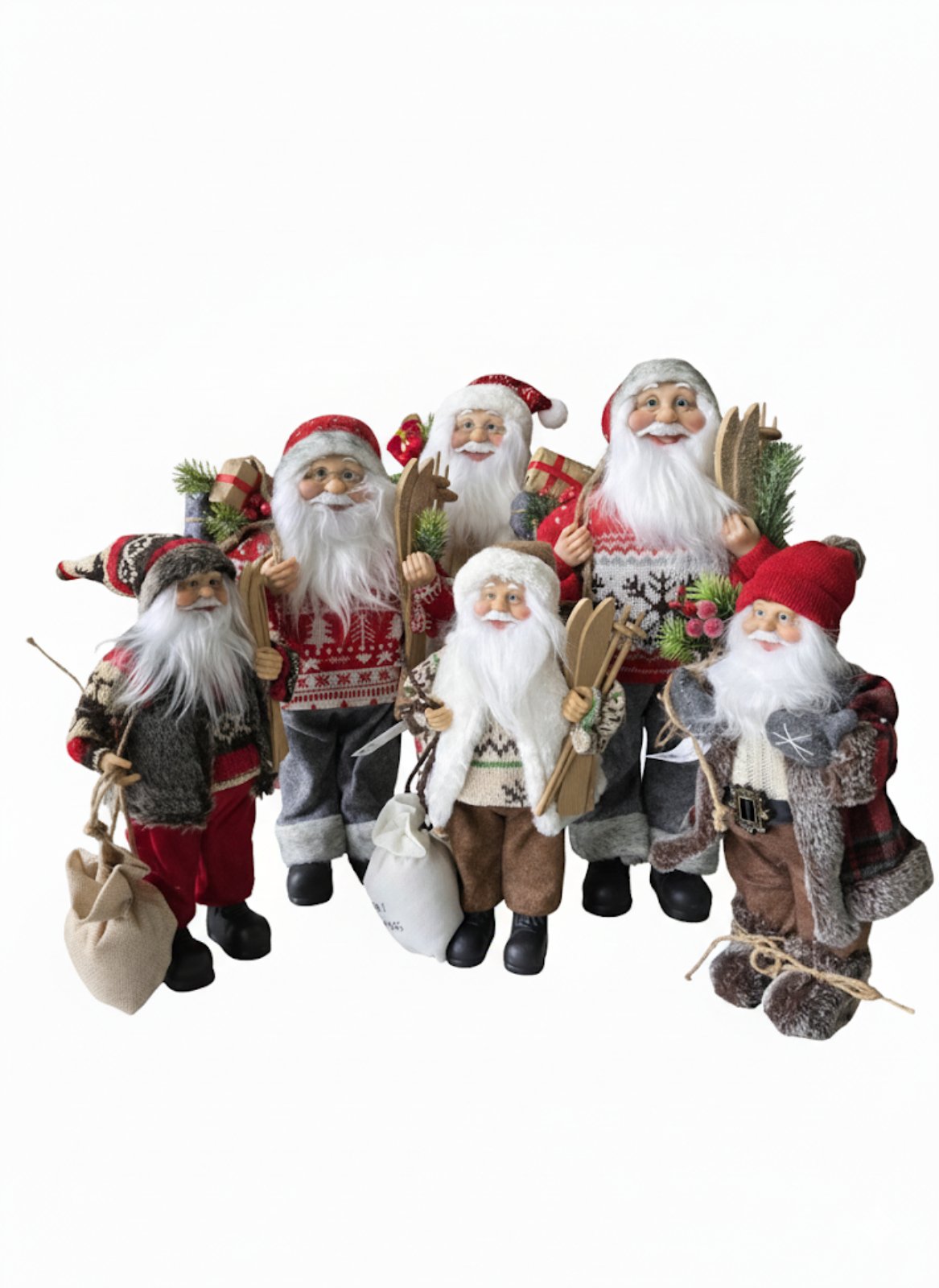 Взгляните на эту фигурку Санта-Клауса высотой 53 см, излучающую дух праздника! Он одет в традиционный красный костюм с пушистой белой отделкой и золотым орнаментом, дополненным широким золотым поясом. На его лице, обрамленном густой белоснежной бородой, сияет добрая улыбка, а на носу — милые круглые очки. В его руках — красный мешок, украшенный ветками остролиста и ели, символизирующий подарки и новогодние чудеса, которые он несет с собой. Фигурка стоит на золотистых ботинках, готовая отправиться в путь, чтобы наполнить дом радостью и теплом.