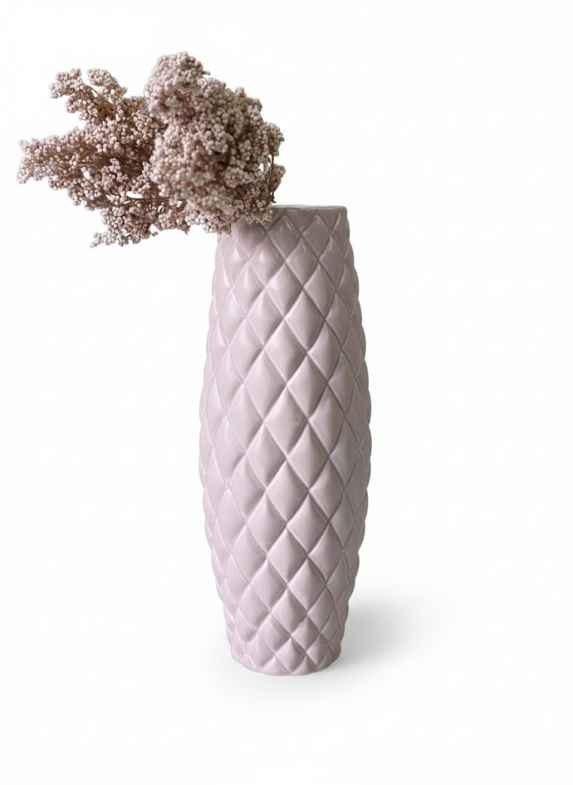 Ця ваза — стильний і сучасний елемент декору для вашого дому. Її оригінальна текстура, що нагадує ромб, додасть унікальності будь-якому інтер'єру. Висота вази 39 см.